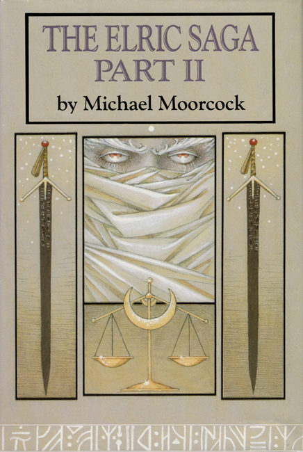 Stormbringer was first published in book form, abridged and revised, in 1965. The abridgements basically condensed the first two novellas (including ‘Black Sword’s Brothers’ [plus part of the third]) into one long section, ‘The Coming of Chaos’. The novel was later restored to its original length and further revised, in 1977.