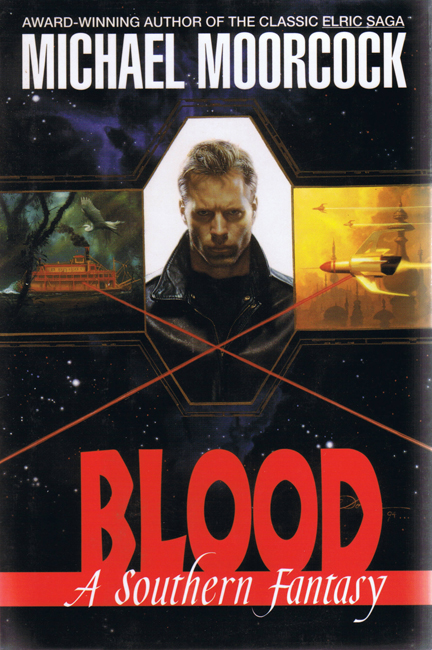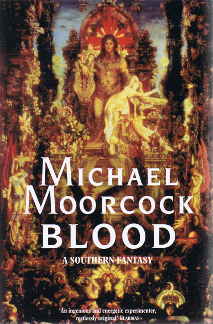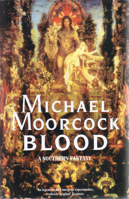 Although mostly written in the U.K., Blood is set in the southern states of the U.S.A., but — like so many of Moorcock’s works — in a world close to but not quite our own, this time one in which the black races have dominance over the disadvantaged whites. Destinies are woven inexorably together, as characters are drawn towards a mythical realm called the Second Ether, there to fight in the Game of Time, the unending conflict between Plurality and Singularity (or Chaos and Law).