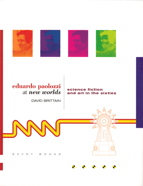 “From 1964 to ’71 New Worlds, under editor Michael Moorcock, evolved from a small SF monthly to what JG Ballard called ‘one of the most exciting magazines of any kind’. Its writers discarded future technology & life on other planets in favour of the media landscape of the 20th century. Paolozzi was showcased with Pop Art colleague Richard Hamilton, and was acknowledged as ‘Aeronautics Adviser’. Eduardo Paolozzi At New Worlds examines the magazine, and interactions of art with the so-called ‘new wave of science fiction’, placing his SF art in the context of the new & fragmentary, collaged writing of Ballard, Moorcock, Aldiss & others. Contains rare & unseen images, excerpts from an unpublished SF novel by the artist & new interviews with Moorcock & others about the magazine”.