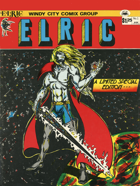 In 1976, Star*Reach No. 6 featured ‘Elric: Prisoner Of Pan Tang’ by Eric Kimball and Robert Gould. The latter would go on to become a key Elric cover artist, with work featured on four volumes of The Elric Saga (Doubleday/S.F.B.C., 1984–2005), The Revenge Of The Rose (Grafton, 1991), the omnibuses Elric Of Melniboné and Stormbringer (Millennium, 1993), and American editions of the most recent Elric trilogy, The Dreamthief’s Daughter, The Skrayling Tree and The White Wolf’s Son (Warner, 2001–’05).