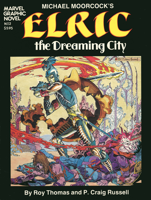 In 1980, Epic Illustrated Nos 3 & 4 featured ‘The Dreaming City’, written by Thomas with artwork by P. Craig Russell. They followed this in issue No. 14 with ‘While The Gods Laugh’ in 1982, the same year that Marvel published both parts of ‘The Dreaming City’ in a single volume. In 1983, Epic Illustrated No. 20 featured ‘Elric: A New Look’ by Robert Gould, and Roy Thomas began adapting the entire six-volume Elric saga in collaboration with artists P. Craig Russell and Michael T. Gilbert, beginning with Elric Of Melniboné (Pacific, 1983/’84).