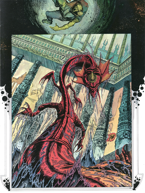 If it can be said of James Cawthorn that his was the definitive portrait of Elric, then a similar argument should be made for Philippe Druillet’s depiction of Melniboné, capturing the capital city of Imrryr in all of its decadence, grandeur and perversity.