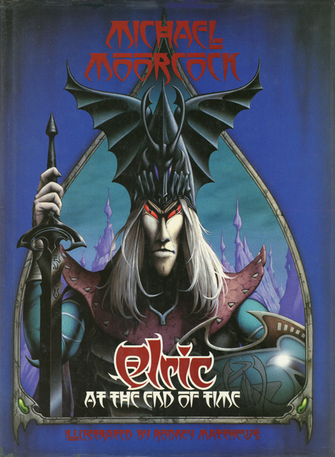 A last item from the 1980s, deserving of a mention, is a lavishly illustrated, outsized edition of the Moorcock novella, Elric At The End Of Time (Paper Tiger, 1987), with artwork by Rodney Matthews.