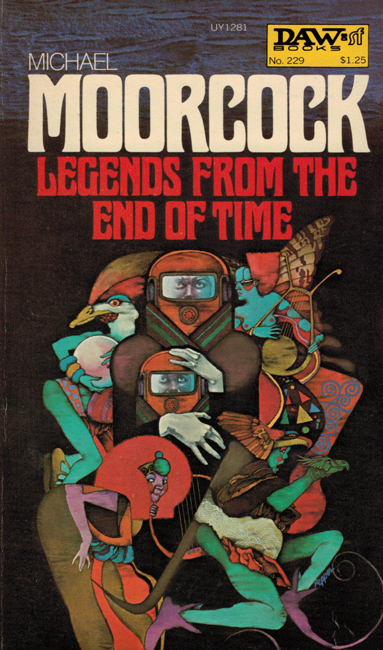 Legends From The End Of Time, a collection of linked short fiction — see below — is a supplementary volume to what is probably Moorcock’s best-loved trilogy, ‘The Dancers At The End Of Time’; it was collected in Tales From The End Of Time (1989) with A Messiah At The End Of Time, and its contents of three novellas (but not its collective title) later appeared in the Legends From The End Of Time omnibus (1993) as well as a 2014 expanded edition of that volume, this time called (but not to be confused with the original) Tales From The End Of Time (q.v.).