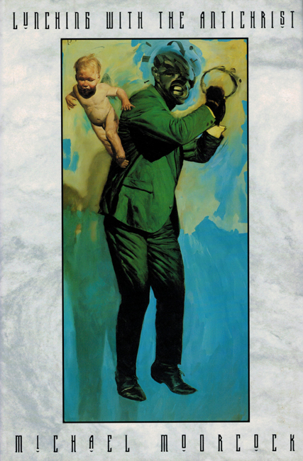 ‘Lunching With The Antichrist’ features Edwin Begg, the Clapham Antichrist, thus cross-linking the story with those of various other members and generations of the Family von Bek and their curious relationships with both Lucifer and the Holy Grail. It also features a mention of Jerry Cornelius’s scurrilous brother Frank.