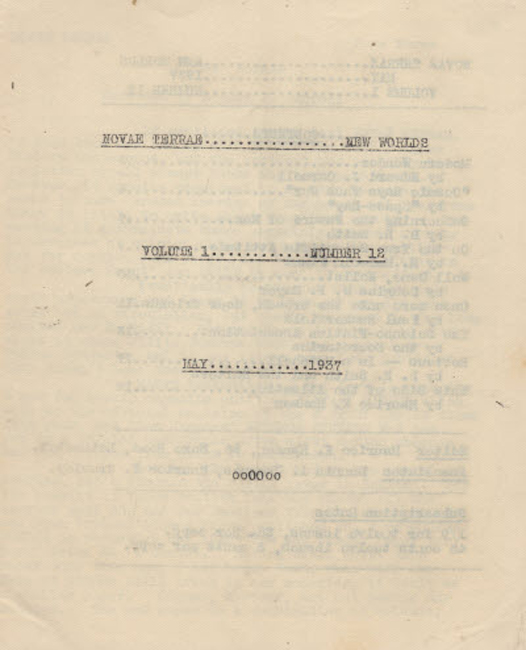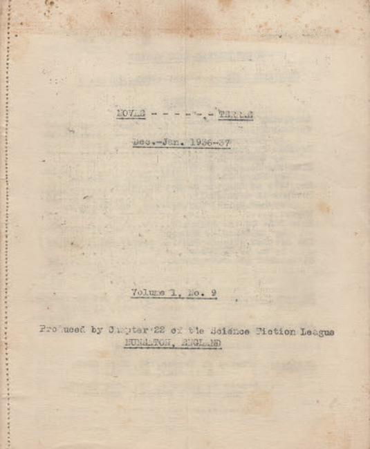 Novae Terrae — Latin for ‘New Worlds’ — was the U.K.’s first ever fanzine, running from 1936 to ’39 before being superceded by a fanzine version of New Worlds which, as a magazine after the War, would go on to become the most seminal of speculative fiction periodicals.