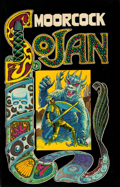 A collection of short fiction & non-fiction — see below — named after and featuring (although not exclusively) Moorcock’s first fantasy stories, those of Sojan the Swordsman, which appeared in Tarzan Adventures in 1957/’58.
