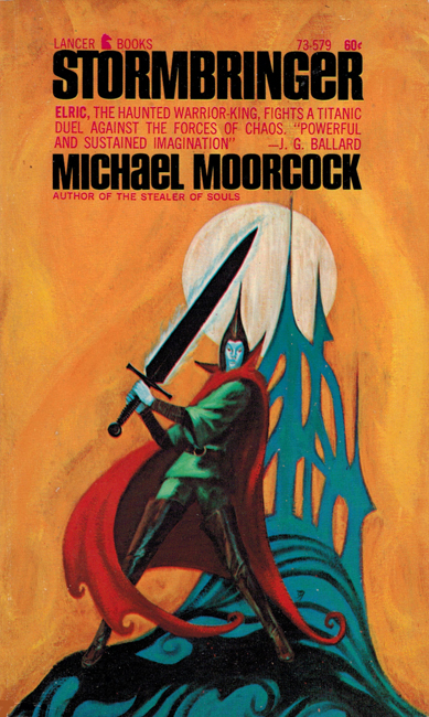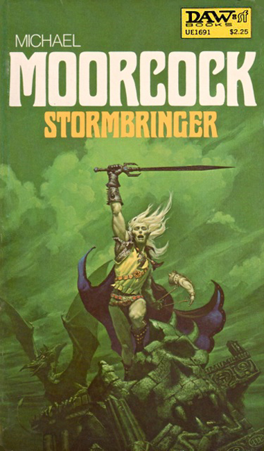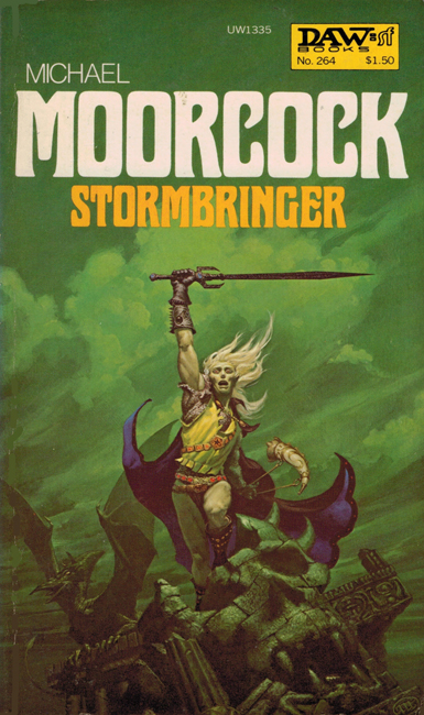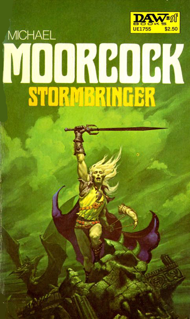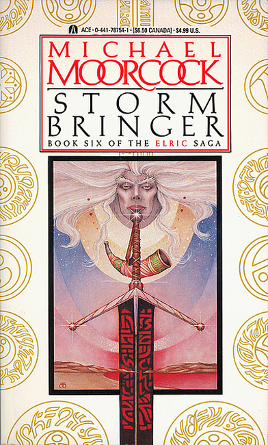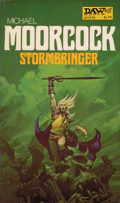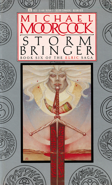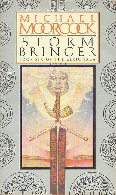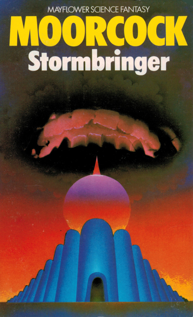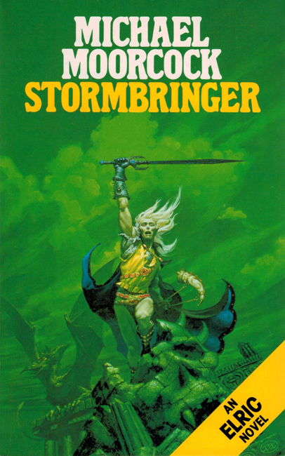 Stormbringer is — in terms of the overall saga’s internal narrative chronology — the final Elric book. It was first serialised in Science Fantasy (q.v.) as the last four (of nine) Elric novellas which originally appeared there between June 1961 and April 1964. It was first published in book form, abridged and revised, in 1965. (The abridgements basically condensed the first two novellas [plus part of the third] into one long section, ‘The Coming of Chaos’.) It was later restored to its original length and further revised, in 1977. In this restored form, it has been collected in The Elric Saga Part Two (1984), the Stormbringer omnibus (1993, retitled and re-revised as Elric: The Stealer Of Souls in 1998 [& 2008]*), Elric (2001), Elric: Stormbringer! (2014) and The Elric Saga Volume Two: Stormbringer (2022).