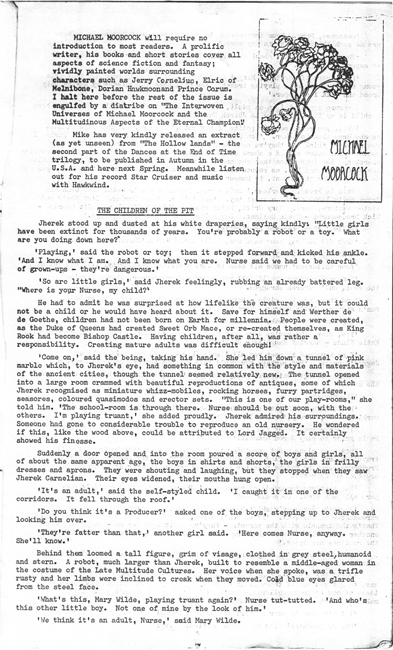 An extract from the novel The Hollow Lands, this is (or rather went on to become) Chapter Eight of the book itself which was published in October 1974.