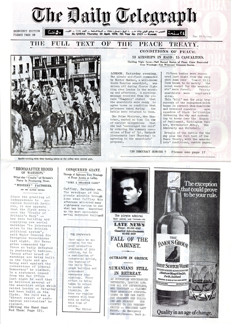 A series of fictionalised ‘articles’, presented as appearing on a newspaper front page dated “Thursday 20 April, 1978”.