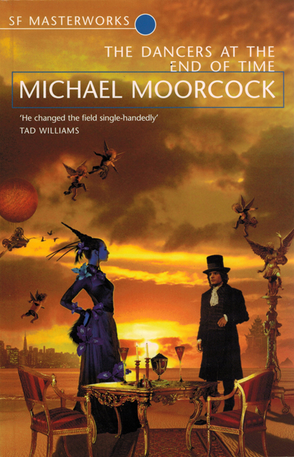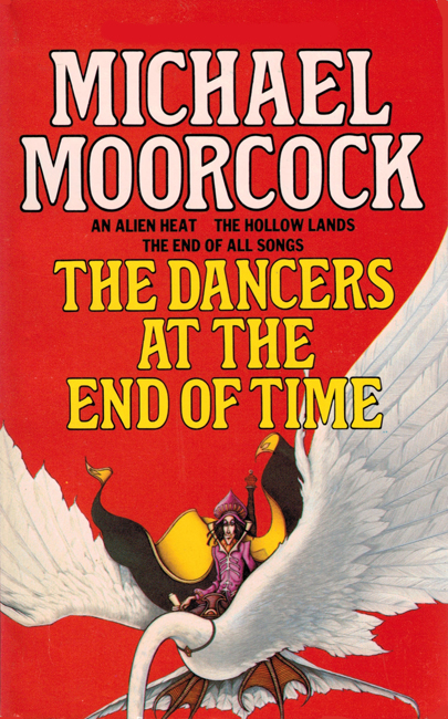 An omnibus of what is probably Moorcock’s best-loved trilogy — a lyrical, romantic comedy of errors in which the decadent, immortal inhabitants of Earth in its very last days meet the reluctant Victorian time-traveller, Mrs. Amelia Underwood — collecting An Alien Heat (1972), The Hollow Lands (1974) and The End Of All Songs (1976). It was preceded by a paperback box set (c. 1978), before being bound as a single hardcover volume in 1981.