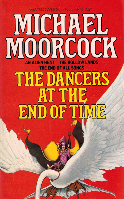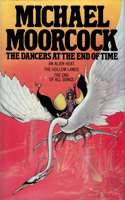 An omnibus of what is probably Moorcock’s best-loved trilogy — a lyrical, romantic comedy of errors in which the decadent, immortal inhabitants of Earth in its very last days meet the reluctant Victorian time-traveller, Mrs. Amelia Underwood — collecting An Alien Heat (1972), The Hollow Lands (1974) and The End Of All Songs (1976). It was preceded by a paperback box set (c. 1978), before being bound as a single hardcover volume in 1981.