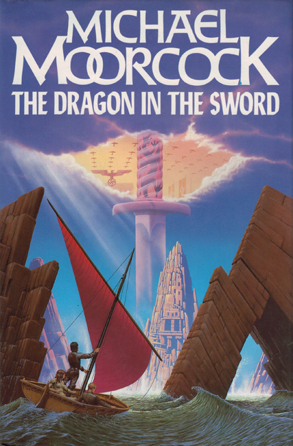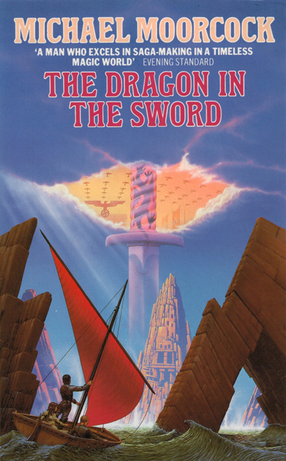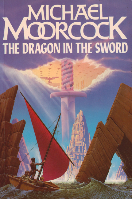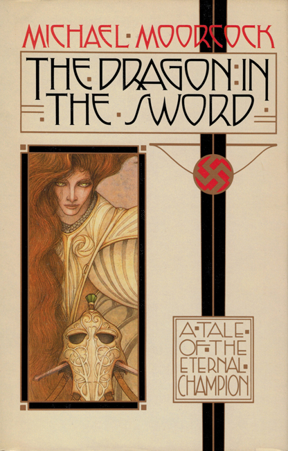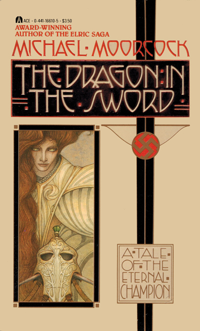 As stated by the book’s sub-title, this is the third and (at the time) final volume in a series featuring not only John Daker — commonly referred to as one of his other Eternal Champion incarnations, Erekosë — but also a member of the Family von Bek, various generations of which began appearing in Moorcock’s works (often based around their curious relationships with both Lucifer and the Holy Grail) from the early 1980s onwards. It was preceded by a German-language edition, Das Ewige Schwert. The first English-language edition appeared in the U.S.A. with unauthorised cuts and/or changes, making the following year’s U.K. edition the first complete version in the author’s native language. In this form it was collected in The Eternal Champion (omnibus, 1992) in the U.K., and in Von Bek (due to thematic links) in the U.S.A. (1995).