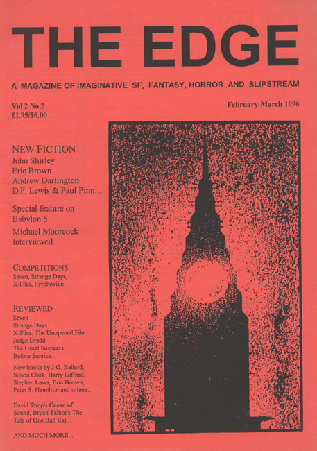 pp. 7–12: ‘The Edge Interview: Michael Moorcock’ (non-fiction) (illustrated by James Cawthorn) conducted by David Kendall & Evans;