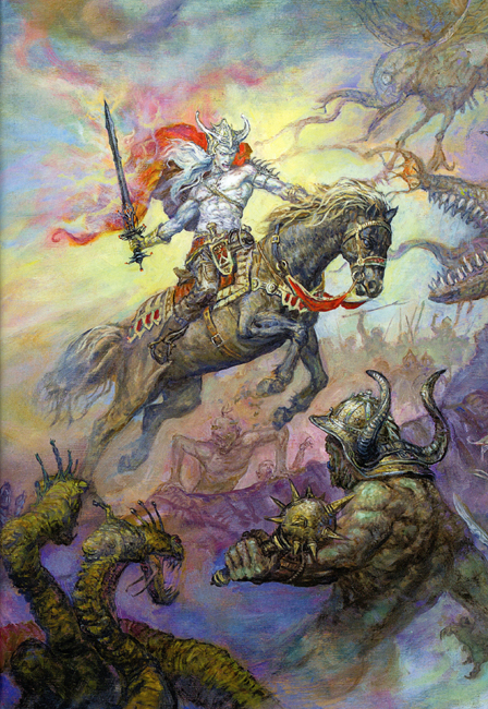 Elric of Melniboné — proud prince of ruins, kinslayer — call him what you will. He remains, together with maybe Jerry Cornelius, Moorcock’s most enduring, if not always most endearing, character…