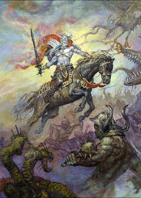 Elric of Melniboné — proud prince of ruins, kinslayer — call him what you will. He remains, together with maybe Jerry Cornelius, Moorcock’s most enduring, if not always most endearing, character…