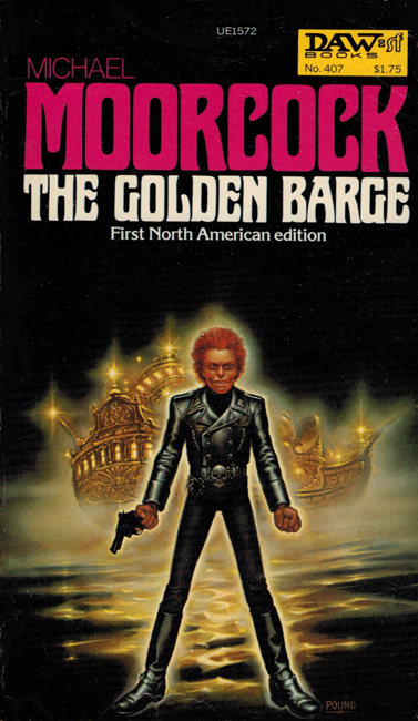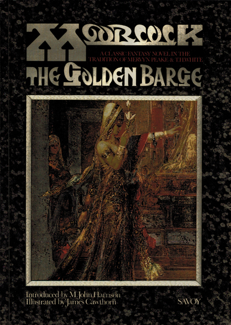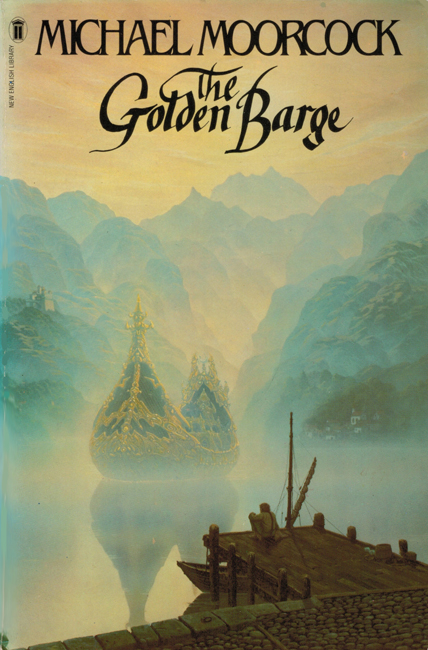 The Golden Barge is “The first novel [Moorcock] completed. It was in 1958 … and the book is printed here with only minor revisions of a sort a publisher might make if he had accepted a first novel”. A modified, self-contained extract had previously appeared as a short story of the same name (in New Worlds, 1965) (q.v.). As a novel The Golden Barge was collected in Earl Aubec And Other Stories (U.K., 1993, followed by a mass-paperback edition in 1997 and an American hardcover edition in 1999 for [both of] which it was further revised).