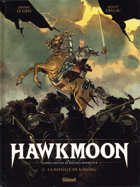 Hawkmoon 2: La Bataille De Kamarg, 2023 (May 17th); written by Le Gris, art by Dellac; original price: unknown (“Code Prix GL54”?); 64 pages; I.S.B.N.: 978-2-344-02790-5; cover artist: Dellac.