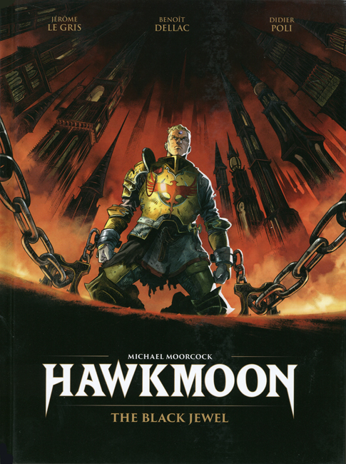 Hawkmoon 1: Le Joyau Noir, 2022 (September 7th); written by Le Gris, art by Dellac & Poli; original price: unknown (“Code Prix GL57”?); 56 pages; I.S.B.N.: 978-2-344-02789-9; cover artists: Dellac &/or Poli.