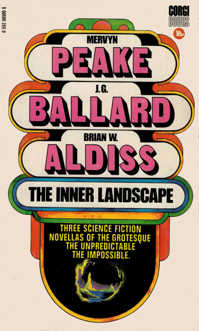 The Inner Landscape is an anthology — edited (anonymously) by Moorcock — of three novellas, one each by Mervyn Peake, J.G. Ballard and Brian W. Aldiss; see below…