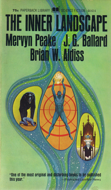 The Inner Landscape is an anthology — edited (anonymously) by Moorcock — of three novellas, one each by Mervyn Peake, J.G. Ballard and Brian W. Aldiss; see below…