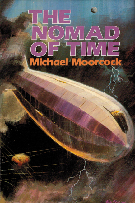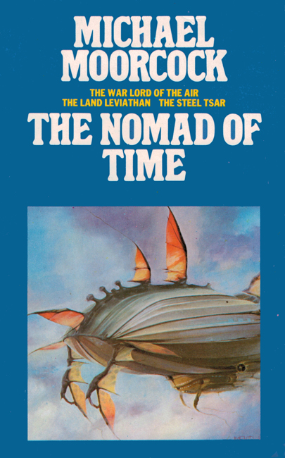 The Nomad Of Time is an omnibus of Moorcock’s proto-steampunk trilogy featuring Oswald Bastable, the titular Nomad of Time, which (like the Cornelius books) tackles head-on the legacies of British imperialism — Empire gone sour — and collects The Warlord Of The Air (1971), The Land Leviathan (1974) and The Steel Tsar (1982’s longer American text). In 1993, it was retitled as A Nomad Of The Time Streams, featuring the first omnibus (and first British) appearance of uncensored text for The Warlord Of The Air, as well as a substantial expansion/revision of The Steel Tsar’s 1981 (shorter) British text. These later (Nomad Of The Time Streams) versions were also, in 2014, title-reverted back to The Nomad Of Time and included for the first time ever the (100%) complete text of all three novels.