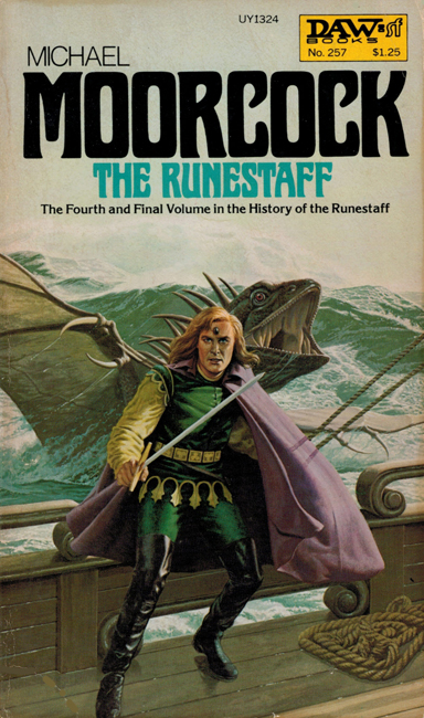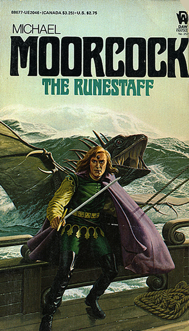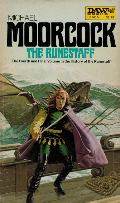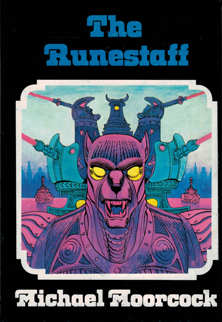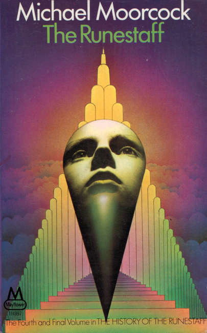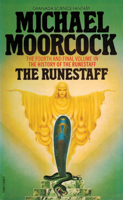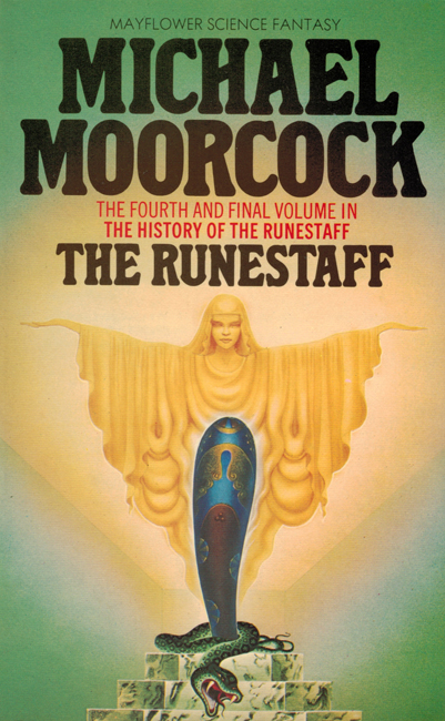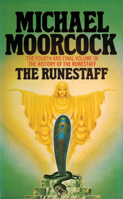 Fourth and final volume in the first of two separate series featuring Duke Dorian Hawkmoon von Köln, The Runestaff was retitled from The Secret Of The Runestaff (1969). It was later revised (initially in the U.S.A. only) in 1977. Unrevised, it was collected in 1979 with The Jewel In The Skull (1967), The Mad God’s Amulet (1968/’69) and The Sword Of The Dawn (1968) in the omnibus, The History Of The Runestaff, which was also later retitled (with the revised texts for the first time in the U.K.) as Hawkmoon (1993) and Hawkmoon: The History Of The Runestaff (2013), whilst in 2010 an illustrated edition of The Runestaff was slightly retitled as Hawkmoon: The Runestaff.
