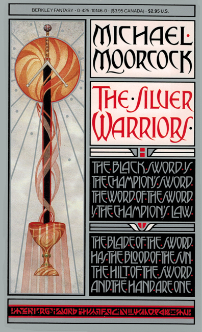 The Silver Warriors, an American retitling of Phoenix In Obsidian (1970), is the second volume in a cornerstone series central to the overarching theme of Moorcock’s entire oeuvre, the Eternal Champion in various incarnations throughout the multiverse, forever fighting for one side or the other as Law and Chaos battle for control of the Cosmic Balance. Featuring Erekosë/Urlik Skarsol as the Champion, it was later revised and collected (as Phoenix…) in The Eternal Champion (omnibus) before finally appearing in America as a standalone edition under its original British title in 2014.