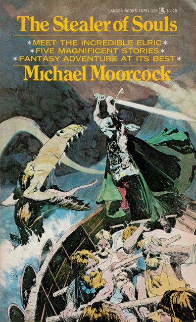 The Stealer Of Souls was the very first Elric book to be published, and the first full-length book to appear as by Michael Moorcock. It contained the first five (of nine) Elric novellas which originally appeared in Science Fantasy (q.v.) between June 1961 and April 1964. These five were later split up and re-collected in, or absorbed into, The Weird Of The White Wolf and The Bane Of The Black Sword (both 1977) and were also, as a result of this assimilation, slightly revised. In more recent years, The Stealer Of Souls (or its component parts) was collected in the omnibuses Elric (2001) and Elric: The Stealer Of Souls (2008).