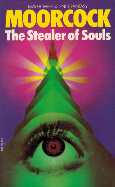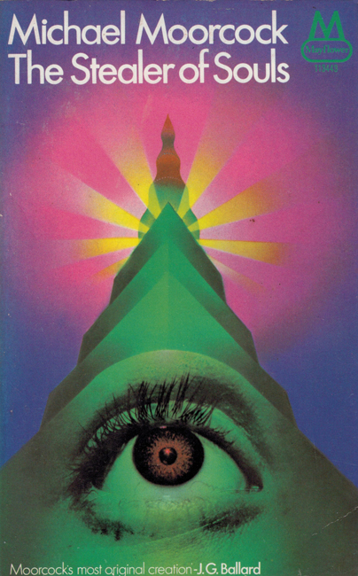It should be noted that the first edition of The Stealer Of Souls (sub-titled by its publishers as “…and other stories”, against Moorcock’s wishes) was bound in orange boards; an otherwise identical second printing had green boards (see below)…
