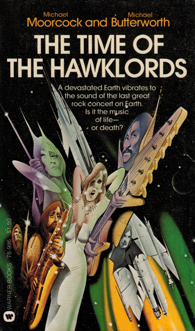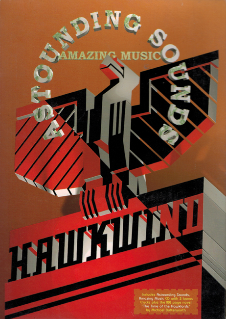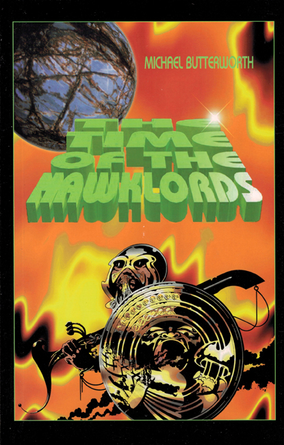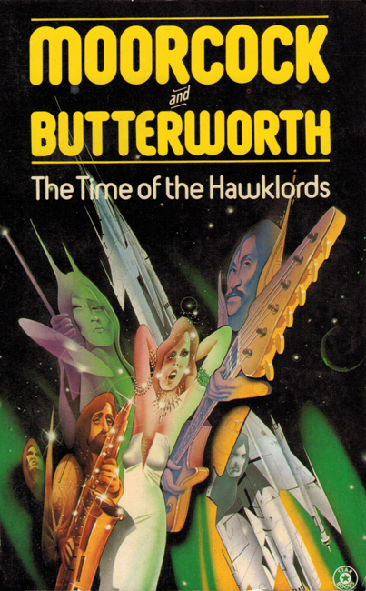 The Time Of The Hawklords is the first volume in a trilogy of titles (mostly) by author and Savoy Books co-founder Michael Butterworth, “based on an idea by Michael Moorcock”. It was followed by Queens Of Deliria (1977, credited solely to Butterworth) and some years later by a graphic novel, Ledge Of Darkness (1994), with an “initial script” by Butterworth and “plot hijack and artwork” by Bob Walker. All three books feature the Hawklords, “entirely fictitious [characters] based on roles used by members of Hawkwind on stage and recorded performances”. The Time Of The Hawklords has twice been revised by Butterworth (see below)…